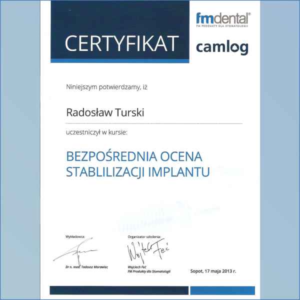 Radosław Turski - Certyfikaty rok 2013